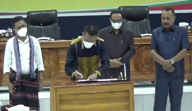 Lewoleba – Semua Fraksi di DPRD Kabupaten Lembata saat rapat paripurna yang digelar di ruang rapat DPRD Kabupaten Lembata, Kota Lewoleba, Jumat, 1 Juli 2022, menyetujui Rancangan Peraturan Daerah (Ranperda) tentang Pertanggujawaban Pelaksanaan APBD Tahun Anggaran 2021.
