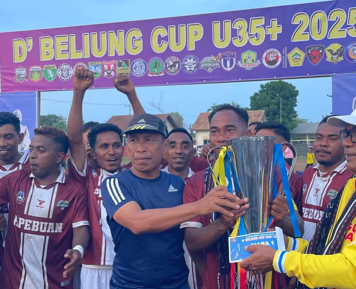 LEMBATA – Desa Kolipadan, Kabupaten Lembata dipenuhi antusiasme masyarakat yang datang menyaksikan partai final antara Lembata Legend vs Apebuan, sekaligus penutupan Turnamen Sepak Bola D’Bliung Cup U35+ 2025 dan peresmian lapangan sepak bola Dadu Bliung Kolipadan, oleh Bupati Lembata P. Kanisius Tuaq, Sabtu (29/11).