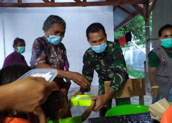 Read moreLewoleba - Anak-anak pengungsi erupasi Ile Lewotolok tampak antusias saat mengantri bubur ayam masakah anggota TNI-AD Korem 161 Wirasakti/Kupang pada...
