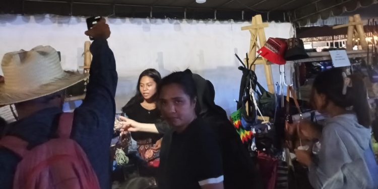 Meski di tengah penerangan yang buruk, Titik tetap meminta pengunjung untuk membelanjakan uangnya di booth-booth gelap gulita pameran UMKM. (BN/001)