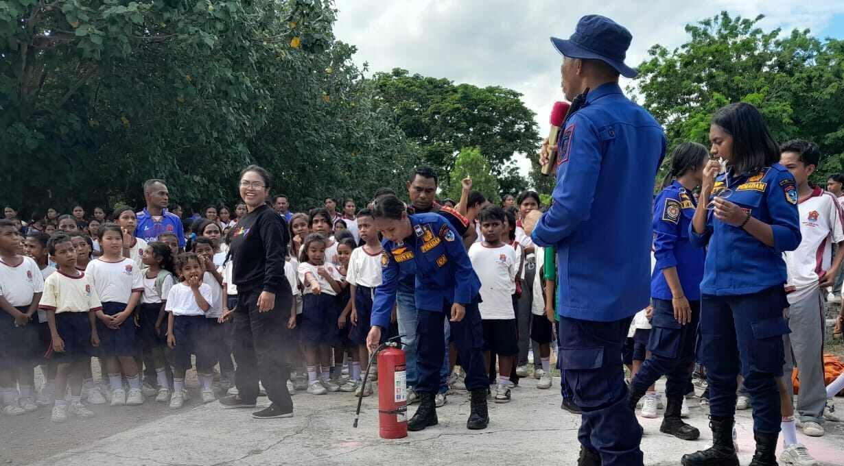 LEMBATA – Para siswa-siswi SD dan SMP St Don Bosco Lewoleba, Kabupaten Lembata tampak antusias mengikuti pelatihan pemadam kebaran di sekolah tersebut pada Sabtu (18/10/2025).