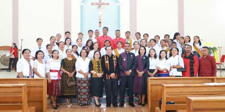NAGEKEO_ Menjelang Perayaan Hari Ulang Tahun (HUT) Kemerdekaan RI ke-80, Pemerintah Daerah (Pemda) Kabupaten Nagekeo menggelar misa syukur, bertempat di Gereja Hati Kudus Yesus ( Centrum) Danga, Mbay Kecamatan Aesesa pada Jumad, (15/08/2025). Misa syukur dihadiri Bupati dan Wakil Bupati Nagekeo, Ketua dan Wakil Ketua Tim Penggerak PKK Kabupaten Nagekeo, Kepala Kantor Kementrian Agama Kabupaten Nagekeo, Para Imam Konselebran, Biarawan/Biarawati, Plh. Sekretaris Daerah, Para Kepala Perangkat Daerah, ASN (PNS & PPPK), Bapak/Ibu guru berserta siswa SD/SMP dan SMA radius Kota Mbay juga umat Katholik. Misa Syukur yang dipimpin Pastor Paroki Hati Kudus Yesus-Danga, RD. Kristo Betu.
