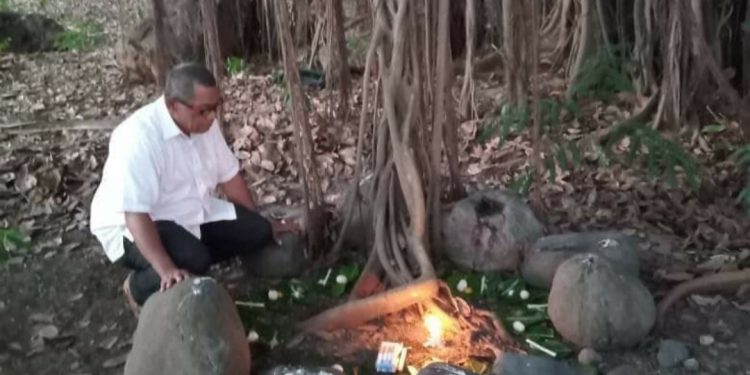Lewoleba – Wakil Bupati sekaligus Plt Bupati Lembata, Thomas Ola Langoday berziarah ke ritus adat dan leluhur Lembata atau nuba nara yang berada di kompleks rumah jabatan Bupati Lembata, Lewoleba, Sabtu (24/7/2021).