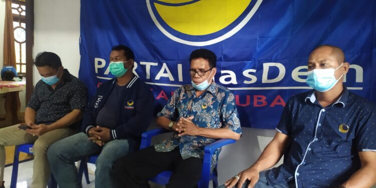 Pengurus DPD Nasdem Lembata menggelar konferensi pers terkait Reses Masa Sidang III DPR RI, Julie Sutrisno Laiskodat di Rumah Restorasi DPD Nasdem Lembata, Lewoleba, Sabtu (27/02/2021) / Foto : BentaraNet