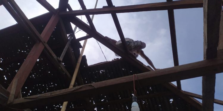 Sehari sebelum membedah rumah Zakarias, relawan Komunitas Taman Daun sudah membedah atap rumah warga di Desa Lamawara.