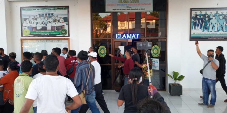 Setelah bernegosiasi, lima orang perwakilan keluarga akhirnya bisa bertemu Kapolres Lembata AKBP Yoce Marthen di ruang lobi Polres Lembata untuk menyampaikan tuntutan mereka.