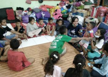 Lewoleba – Anak-anak penyintas banjir bandang dan longsor yang berada di posko pengungsian kantor Lurah Lewoleba Timur, Kabupaten Lembata tampak ...