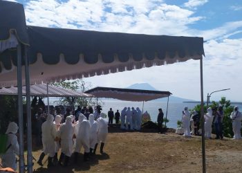 Lewoleba - Jenasah Bupati Lembata, Eliyaser Yentji Sunur telah dimakamkan di Kuma Resort, Desa Waijarang, Kabupaten Lewoleba, Minggu (18/7/2021) pada ...