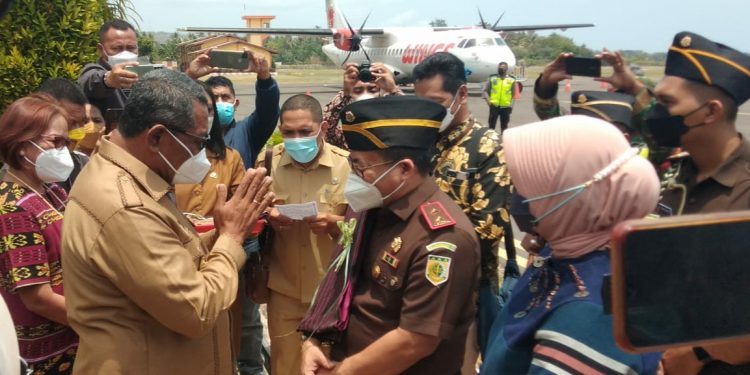 Kepala Keati NTT, Yulianto yang tiba di Bandara Wunopito Lewoleba sekitar Pukul 11.30 WITA disambut Bupati Lembata, Thomas Ola Langoday, Ketua DPRD Kabupaten Lembata, Petrus Gero, Kepala Kejari Lembata, Azrijal dan Komandan Kodim 1624/Flotim, Letkol Czi Imanda Setyawan.